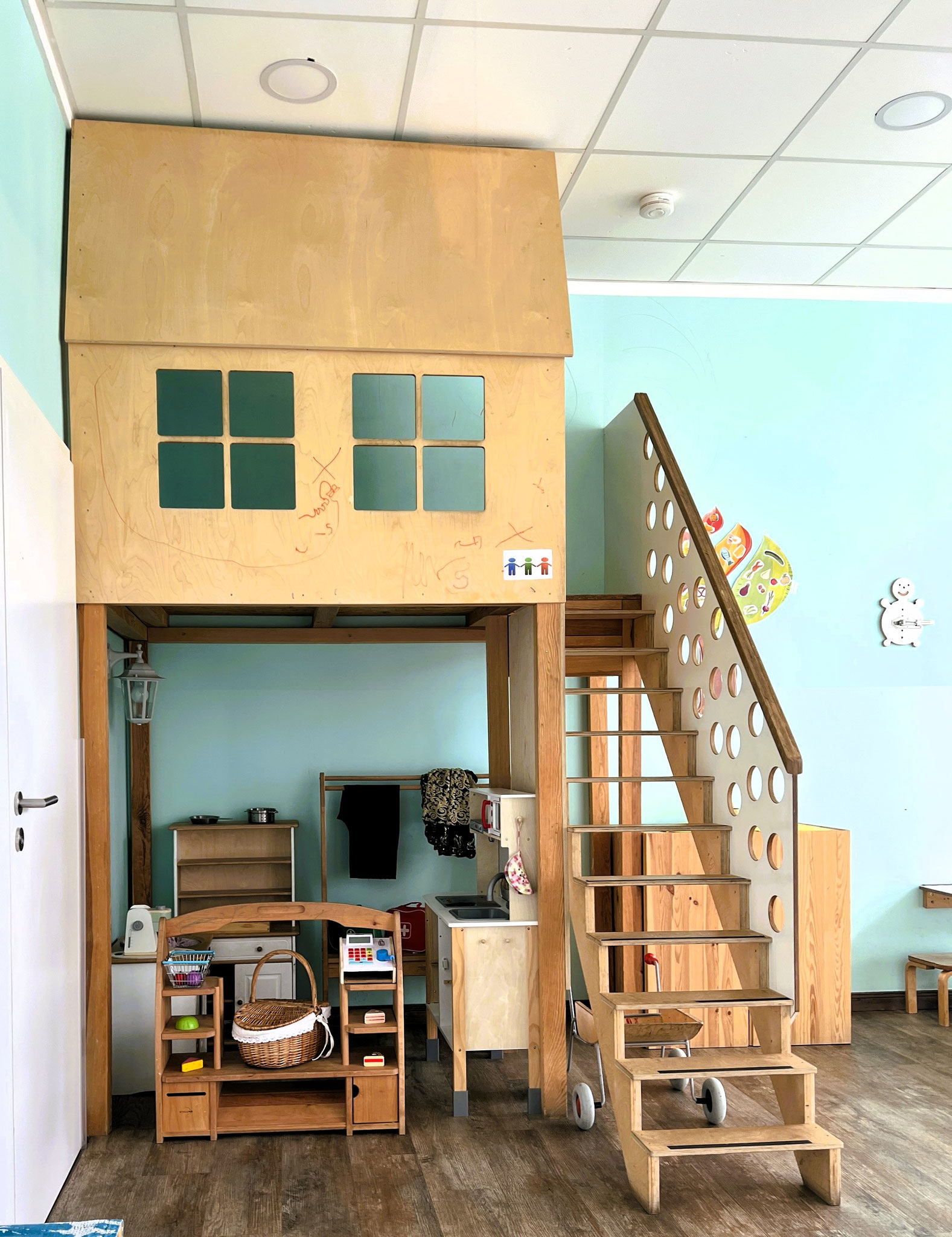 Auf einer Gesamtfläche von 345 qm bieten wir Lebensräume, Spielräume, Erfahrungsräume, Rückzugsräume und Bildungsräume zugleich an. Die Umsetzung gestaltet sich durch die Nutzung des Innen- und Außenbreiches.