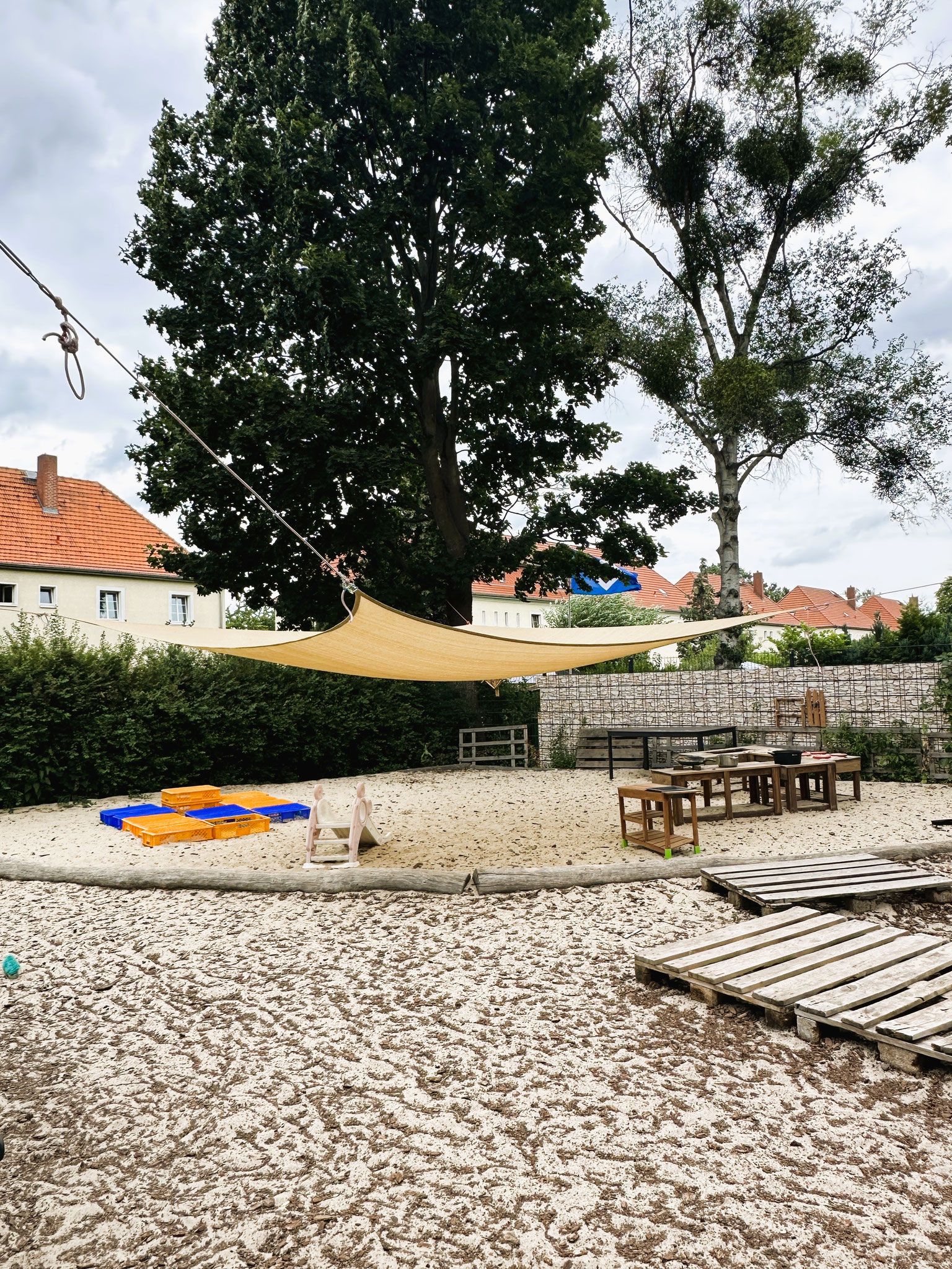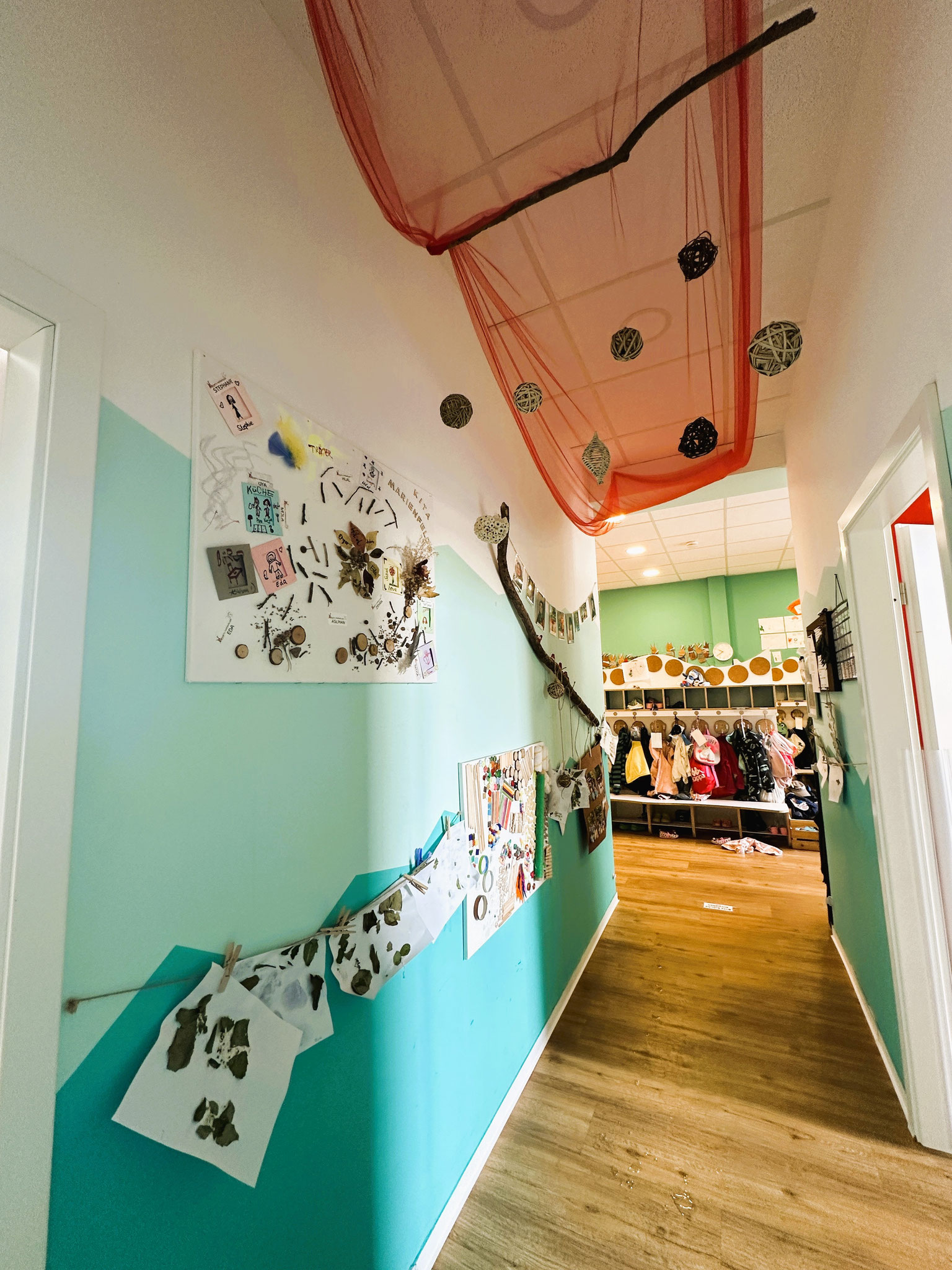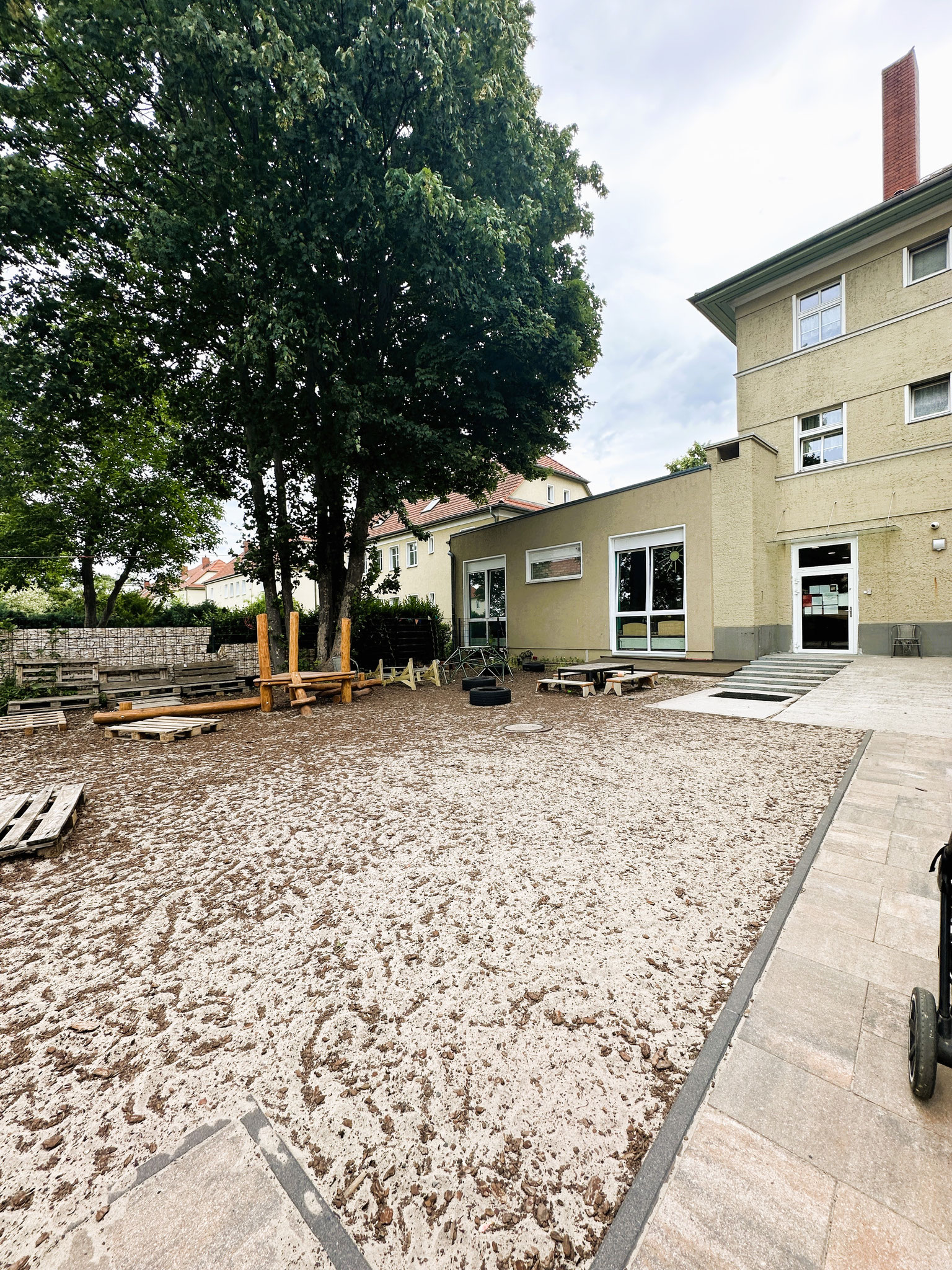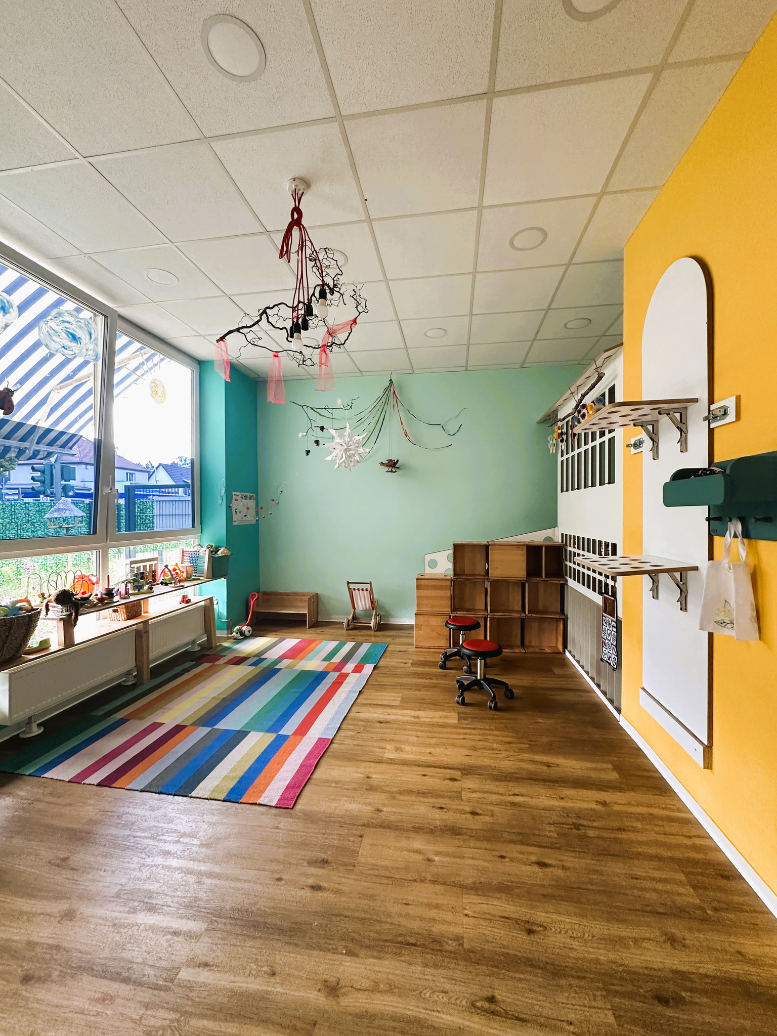 Mit einer Innenfläche von etwa 380 qm, einer geräumigen Außenfläche von etwa 450 qm, die sich in einen vorderen und hinteren Bereich verteilen, bieten wir auf insgesamt 830 qm Platz für 47 Kinder.
